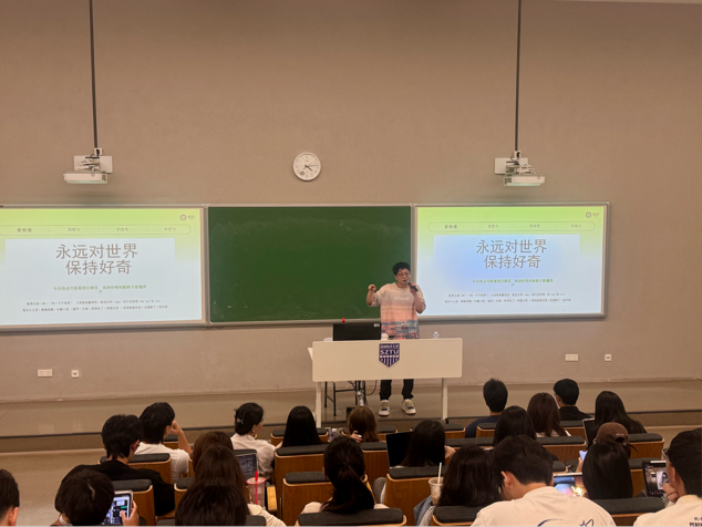 同时,她详细介绍了蜂群文化的平台支持体系,包括面向新员工的“一对一导师制”“双通道晋升路径”等及即时激励机制,为学生呈现清晰的职业发展图景。