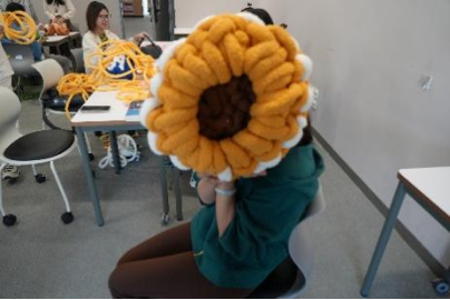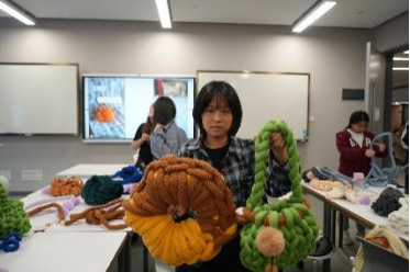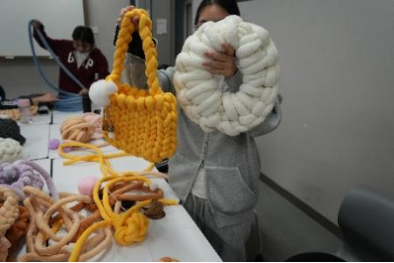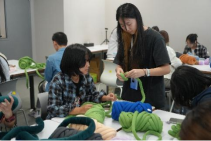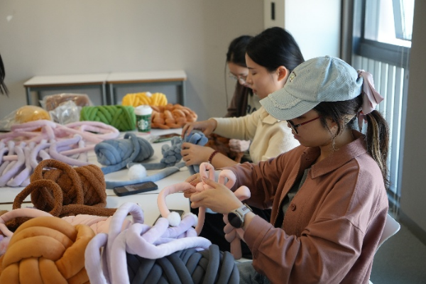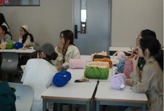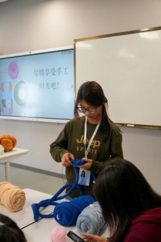 在看完了教学视频后,大家开始了自己的DIY制作。同学们专注地编织,老师们也饶有兴致,创意十足。在活动过程中,学生会(筹)生活部的成员们穿梭其中,耐心地提供指导和帮助。多彩的毛线与欢笑声彼此交织,绘就一幅温暖而生动的画卷。