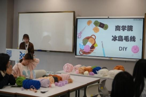 2025年12月5日下午,商学院分工会与学生会(筹)联合举办冰岛毛线DIY活动。本次活动在商学院1504室顺利开展!老师和同学们都沉浸式体验手工乐趣,亲手织出了带着自然暖意和个人创意的专属好物。