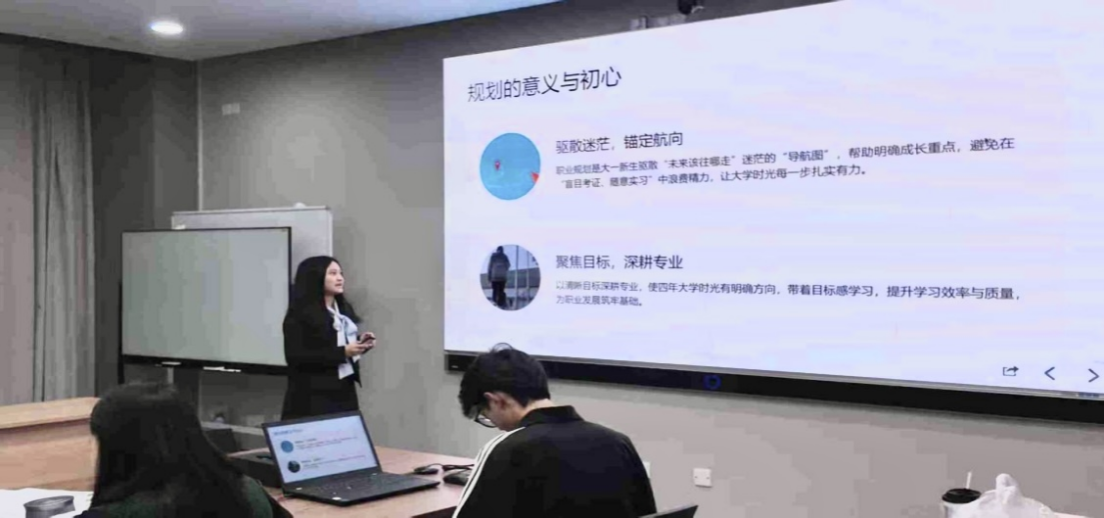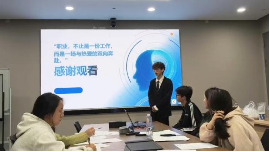 比赛中,选手们依次登台,结合精心制作的PPT与自信流畅的表达,全面展示个人特质,系统阐述职业目标与发展路径。大家从自身兴趣、性格特点与专业背景出发,紧密围绕行业趋势与市场需求,明确了各自的职业方向,并制定了具体可行的阶段计划。