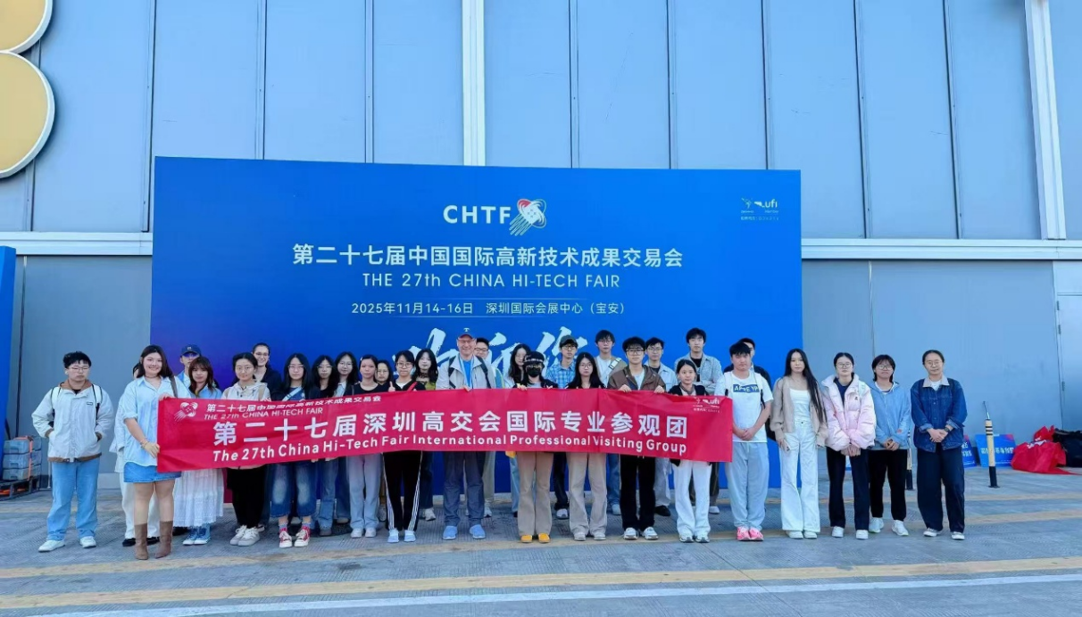 On November 15, 2025, a group of 40 students majoring in Marketing from the Business School at Shenzhen Technology University, led by Associate Professor Lutz Philip Hecker, visited the 27th China Hi-Tech Fair (CHTF) at the Shenzhen Convention and Exhibition Center. This field trip was designed to bridge the gap between theoretical knowledge from their courses and real-world global business practices, providing an invaluable platform for students to observe, learn, and experience cutting-edge technological trends and their market applications.